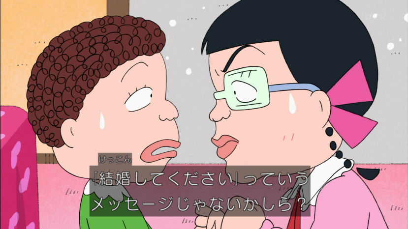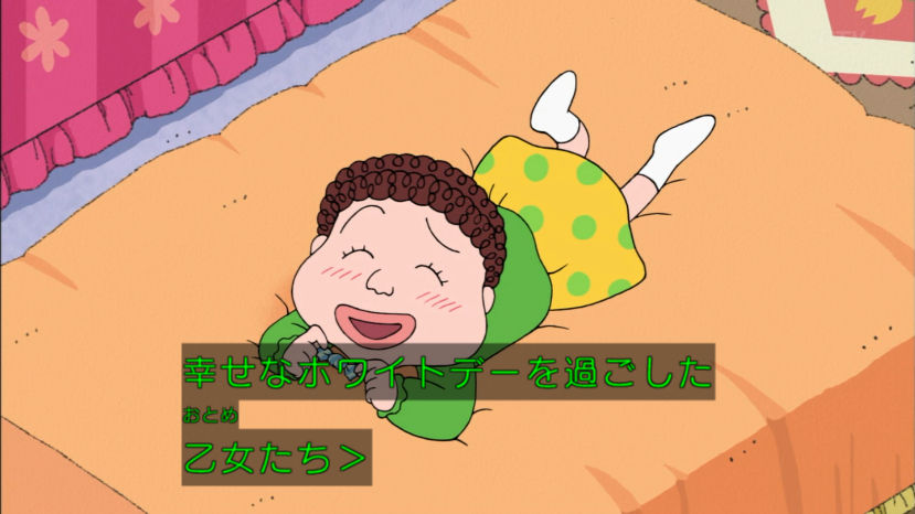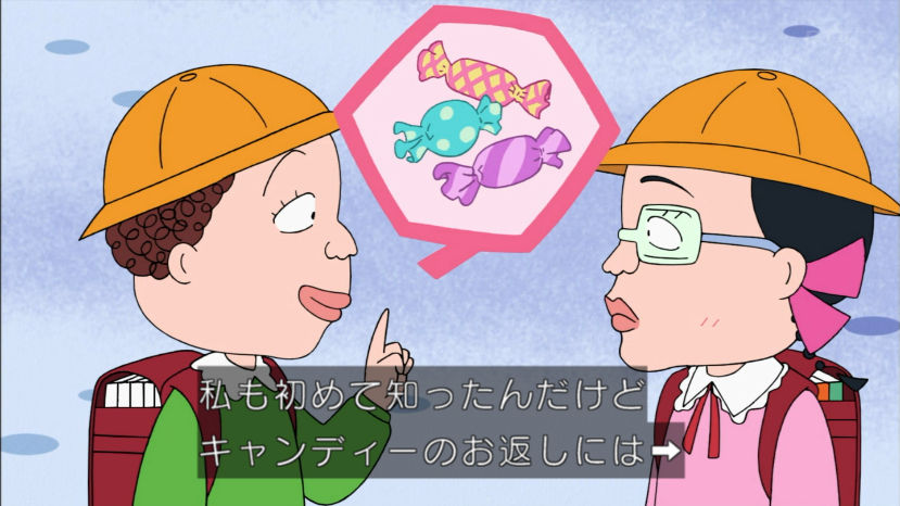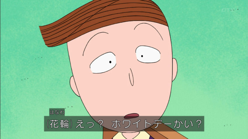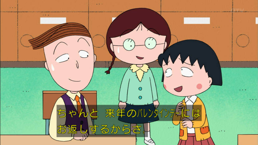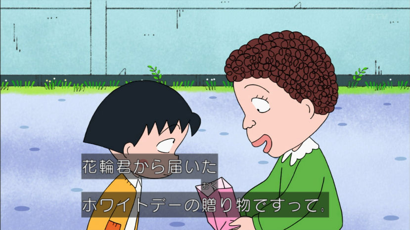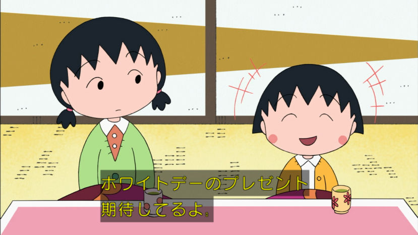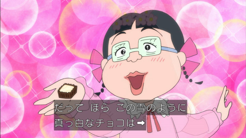 花輪君、バレンタインのチョコあげなかったけど、来年あげるから前借りでお返しくれないかな。まる子、とびっきり安くてもホントはすっごく高いものが欲しいんだよ。 今回のちびまる子ちゃんは『白いチョコレートの想い』『まる子の近くにお宝が!?』の2本だよ。お楽しみにね。